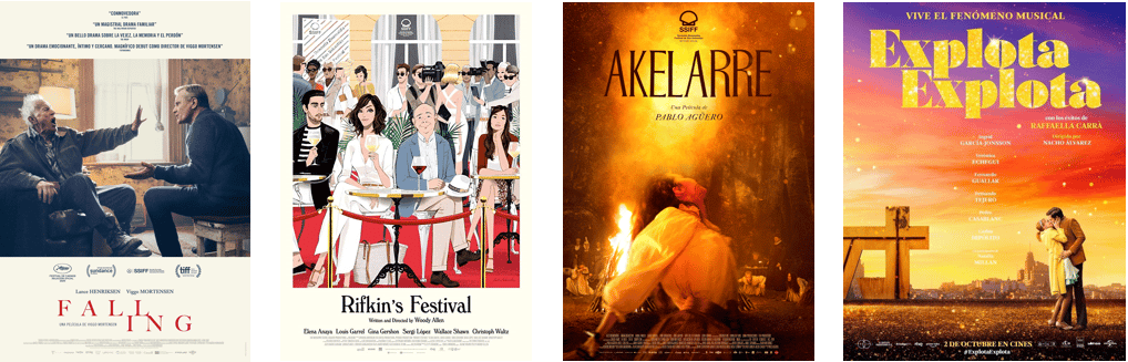 A pesar del incansable goteo de estrenos retrasados al 2021, el sector del cine se ha ido reactivando poco a poco. En octubre, después de los festivales de Venecia y San Sebastián (SSIFF), los grandes estrenos vuelven al cine. Rifkin’s Festival, Falling, Explota, explota, Akelarre, Verano del 85, Ane, Sentimental… Son algunas de las películas que se presentaron en el SSIFF y que podremos ver junto con unas palomitas a lo largo de estas semanas. En Cineverso pudimos adelantarnos a alguna de ellas, aquí os dejamos algunas breves reseñas y opiniones.