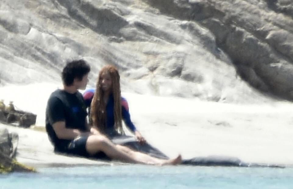 Las imágenes, tomadas por los paparazi en Italia, donde se está rodando la cinta, nos muestran la escena de Ariel y Eric en la orilla. No parece que sea en pleno rodaje, pues Jonah va vestido de camiseta y bañador, mientras Halle lleva un neopreno. Por tanto todo indica que es un ensayo de escena. Pero podemos apreciar algo del look que llevará Halle Bailey como Ariel, pues se le ve una larga melena trenzada y rojiza.